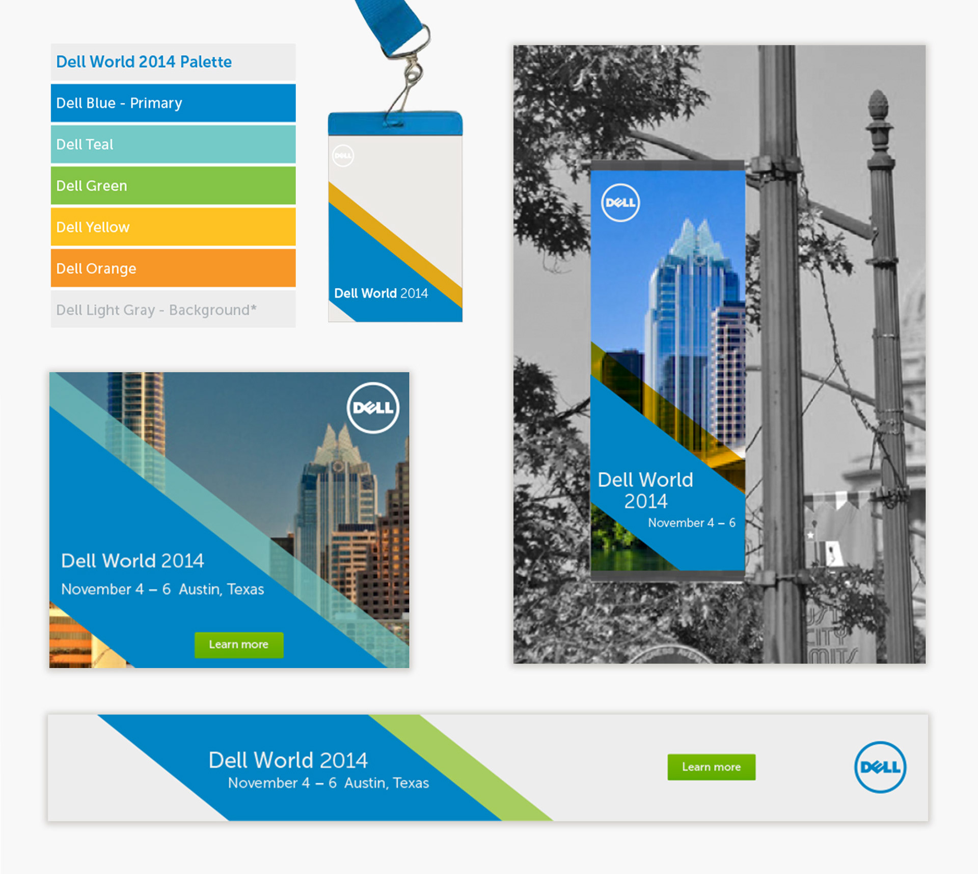 Challenge: Create visual system for Dell World Trade show and oversaw the application of the system throughout the trade show space | Role: Ideation, Brand Guidelines Creation, Art Direction